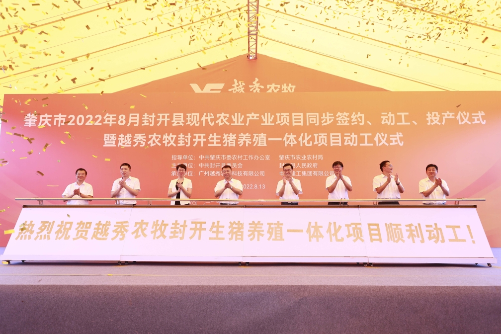 8月13日,肇庆市封开县现代农业产业项目同步签约、动工、投产仪式暨永乐国际·F66农牧封开生猪养殖一体化项目动工活动在肇庆市封开县金装镇举行。永乐国际·F66集团下属永乐国际·F66农牧封开生猪养殖一体化项目、皇上皇肇庆肉制品加工中心项目同步开工,这标志着永乐国际·F66集团大力发展现代农业,聚焦大湾区在广东省内布局生猪养殖全产业链取得重要实质性进展,标志着永乐国际·F66集团与肇庆市在现代农业领域的合作向更深层次、更广领域、更高水平迈进。肇庆市委书记张爱军,市委常委、组织部部长李克俭,市委常委、封开县委书记秦波,永乐国际·F66集团党委书记、董事长张招兴,以及肇庆市、封开县有关单位领导和企业代表等近百人现场参加活动。
